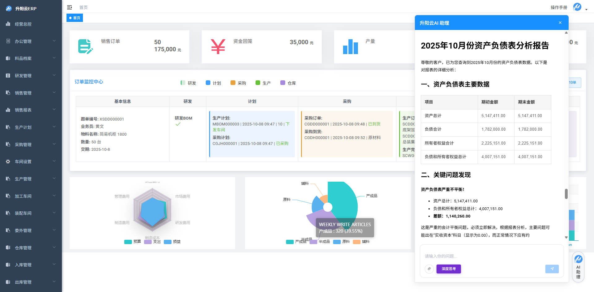 升阳云AI ERP智能体,全面接入,实时分析业务状态、财务数据