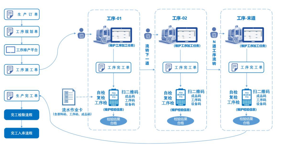 A. 工序完工后可使用 PDA 扫二维码(成品码、工序码、设备码)录入检验信息。